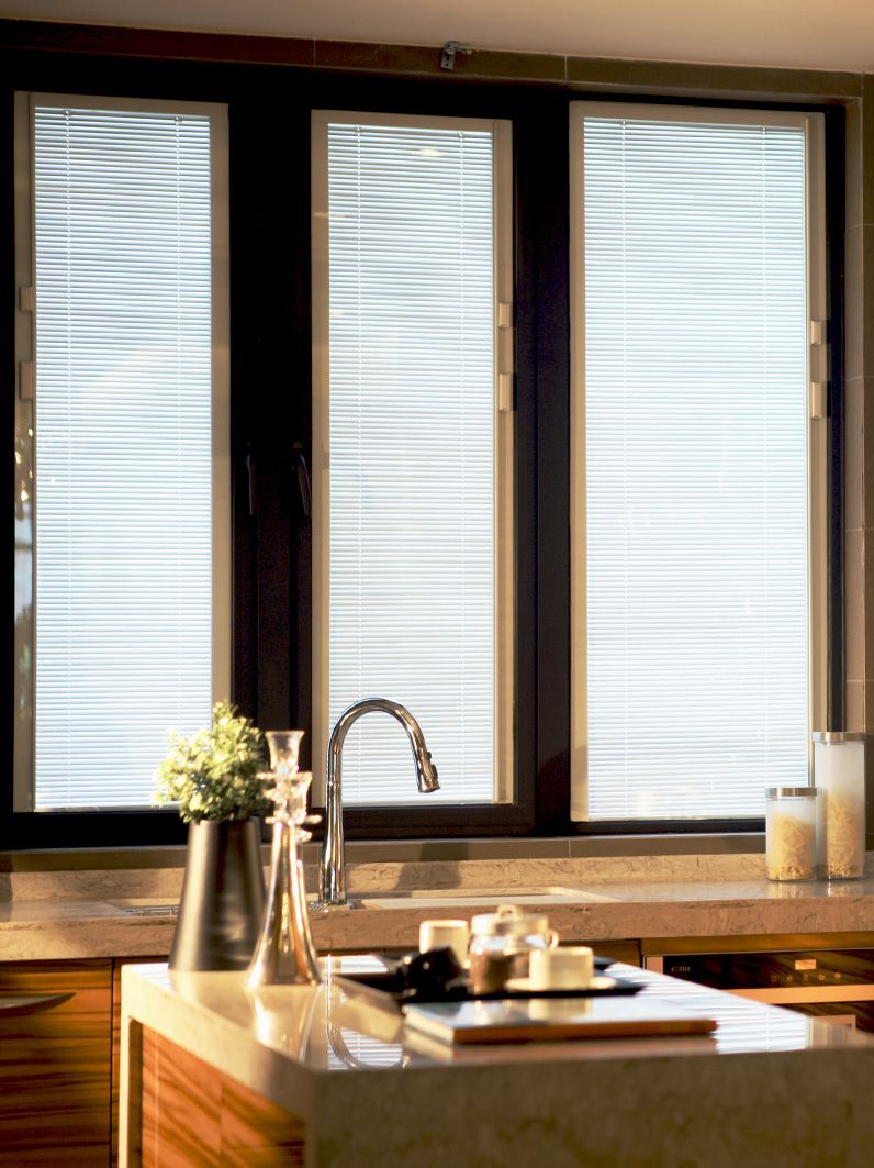 Các rèm được tích hợp bên trong mang lại sự riêng tư cao cấp, trong khi kính cách nhiệt cung cấp khả năng cách âm và an ninh tuyệt vời. Được sử dụng rộng rãi trong các văn phòng cao cấp, khu dân cư sang trọng, bệnh viện, khách sạn và các khu phát triển bất động sản cao cấp khác.